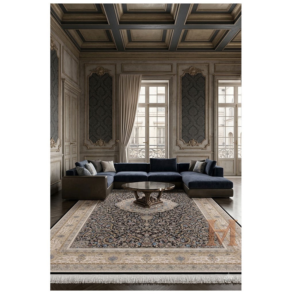 PERA LUSSO ATLAS İRAN İPEK 5348 DARK BLUE BEİGE