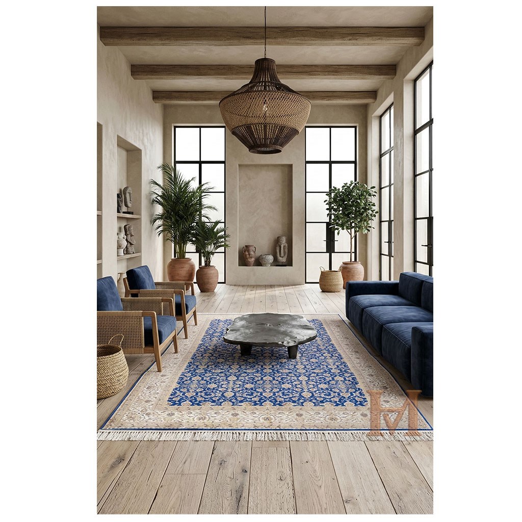 %100 Modal İpek kullanılır. Viskon, halıya o meşhur "İran İpeği" parlaklığını ve yumuşaklığını verirken; akrilik, halının formunu korumasını sağlar.