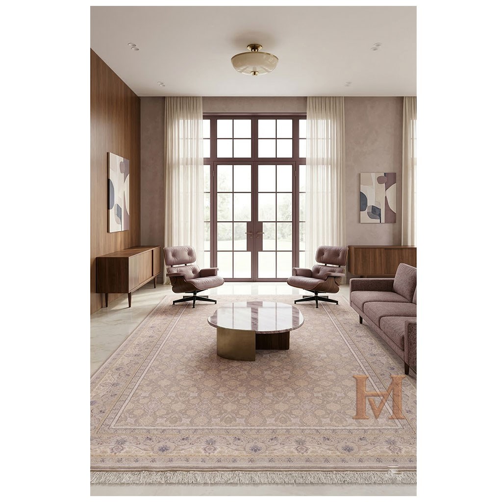%100 Modal İpek kullanılır. Viskon, halıya o meşhur "İran İpeği" parlaklığını ve yumuşaklığını verirken; akrilik, halının formunu korumasını sağlar.