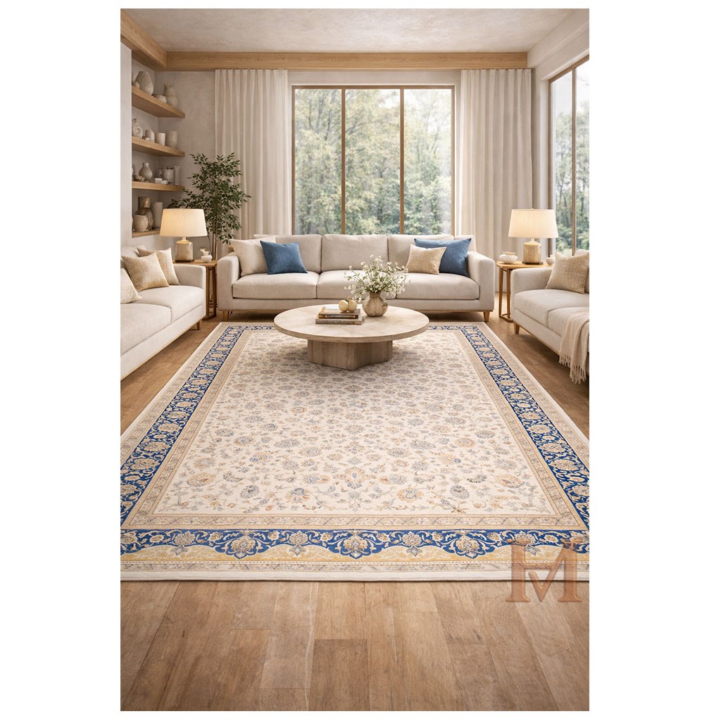 %100 Modal İpek kullanılır. Viskon, halıya o meşhur "İran İpeği" parlaklığını ve yumuşaklığını verirken; akrilik, halının formunu korumasını sağlar.