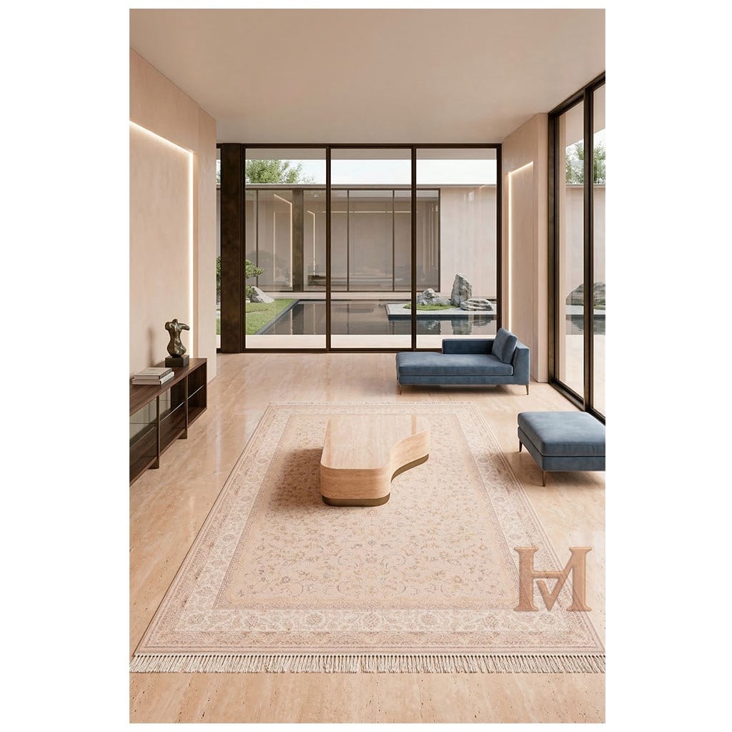 Taban Yapısı: Pamuk atkı veya dokuma taban kullanılır, bu da halının yere daha sağlam oturmasını ve kaymamasını sağlar.