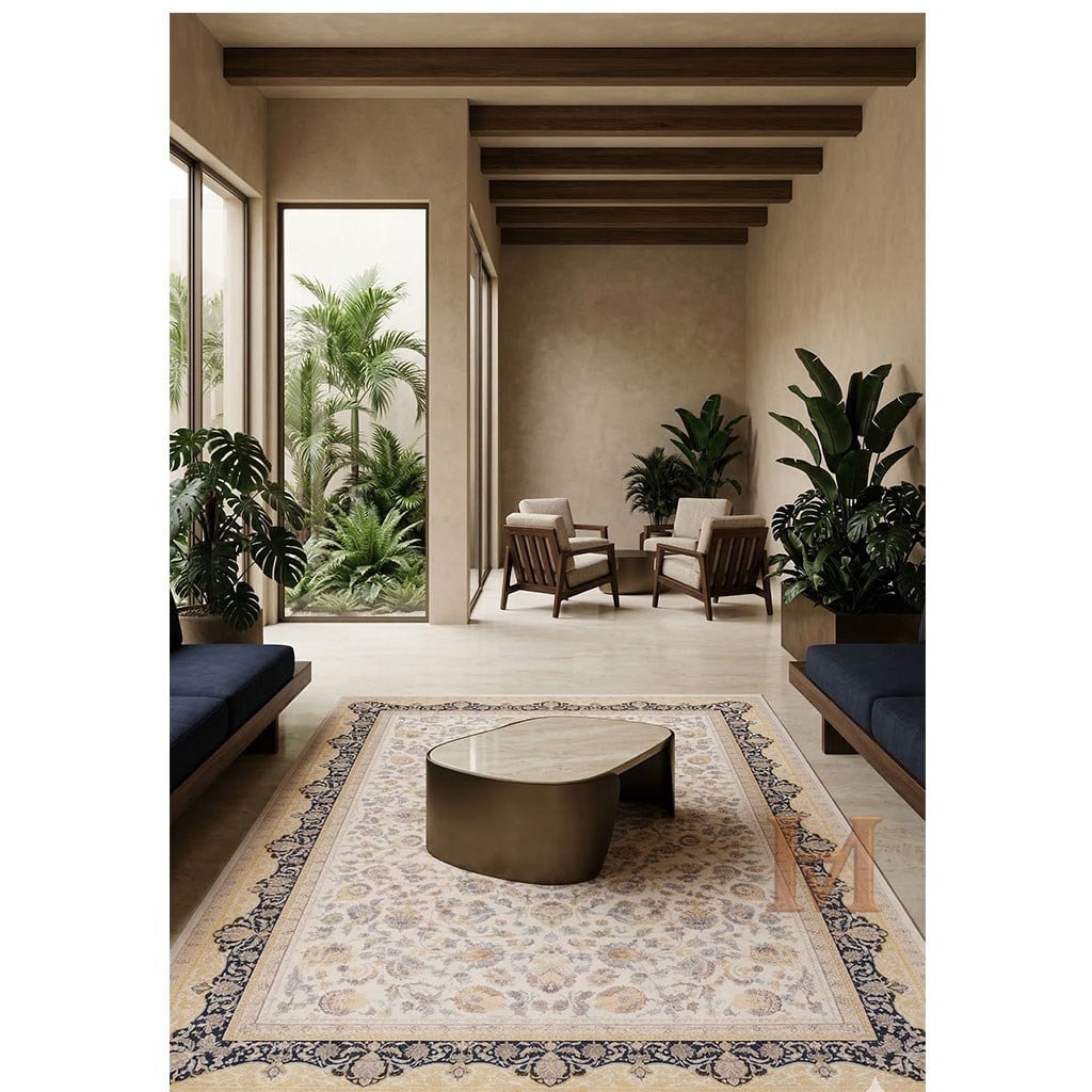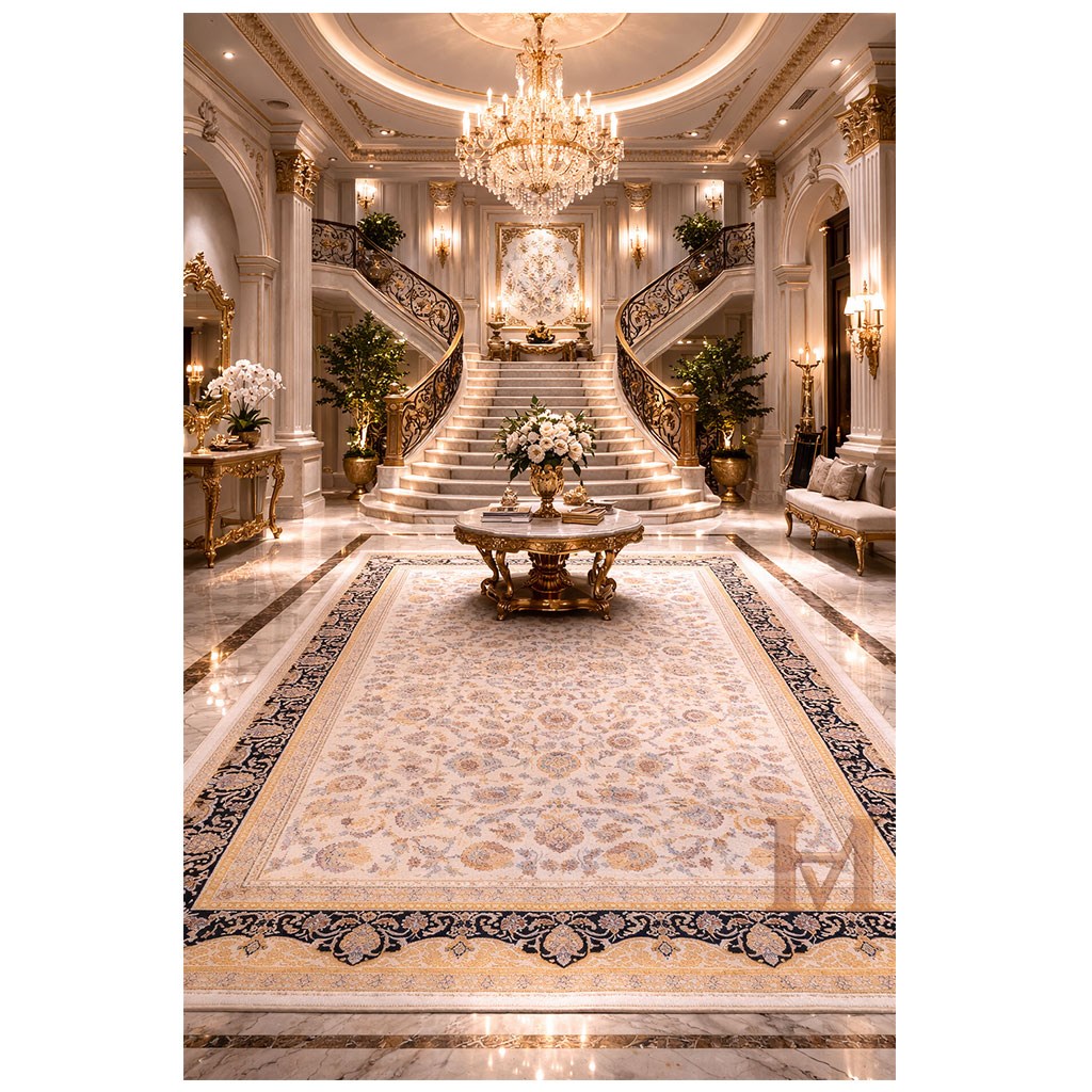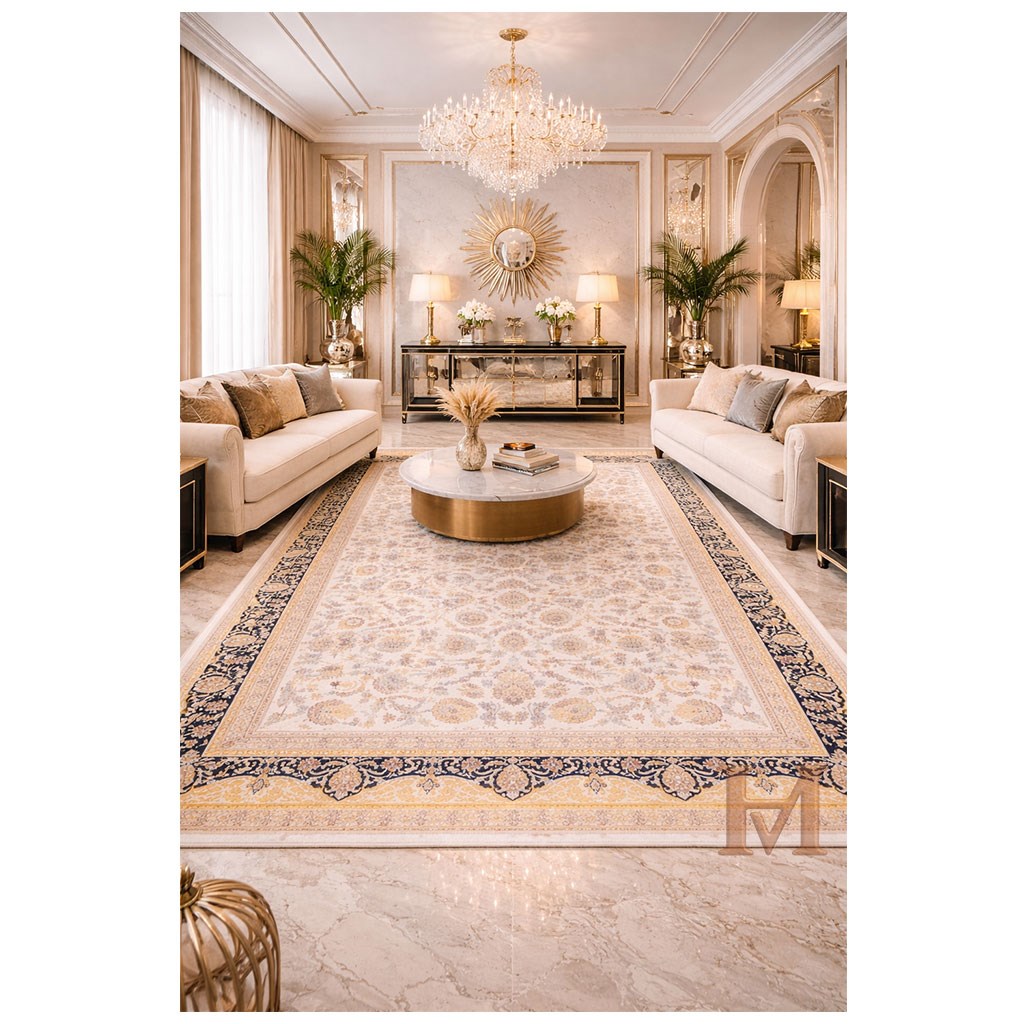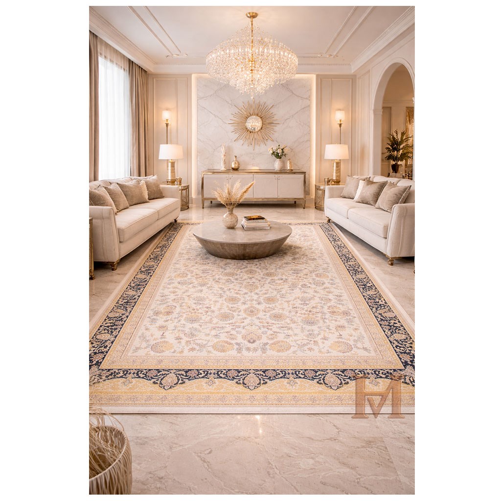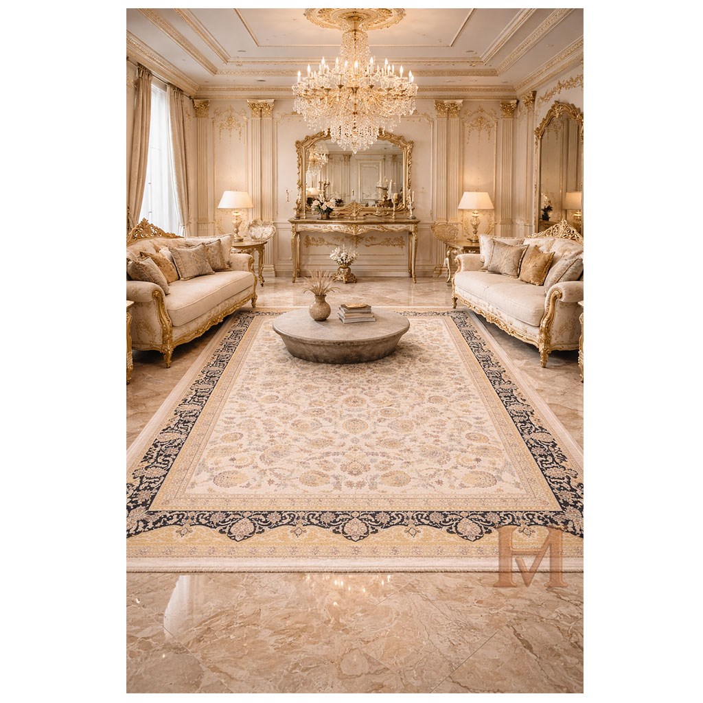%100 Modal İpek kullanılır. Viskon, halıya o meşhur "İran İpeği" parlaklığını ve yumuşaklığını verirken; akrilik, halının formunu korumasını sağlar.
